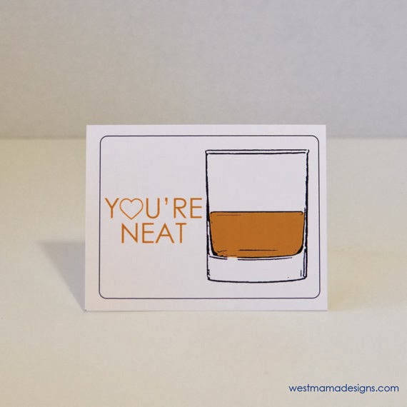 Since I have to work an event tonight, Cameron and I celebrated Valentine's Day last night. I had to stop by the grocery store after work, so I picked up Cameron's gifts while I was a there - a 12 pack of Sam Adams Seasonal and some NY strips. Beer + steaks = the way to my man's heart. I also bought him this card since he's been on a bourbon kick lately and he always used to jokingly tell me I was "neat" when we first started dating. Ha.